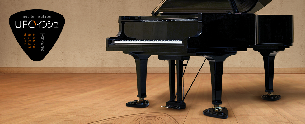 UFO Insu 是专为移动设计的木质支撑器。三个内置脚轮使单人也能顺畅移动三角钢琴。
